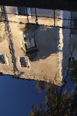 odbicie zamku w wodzie Słupi przy zamkowym młynie